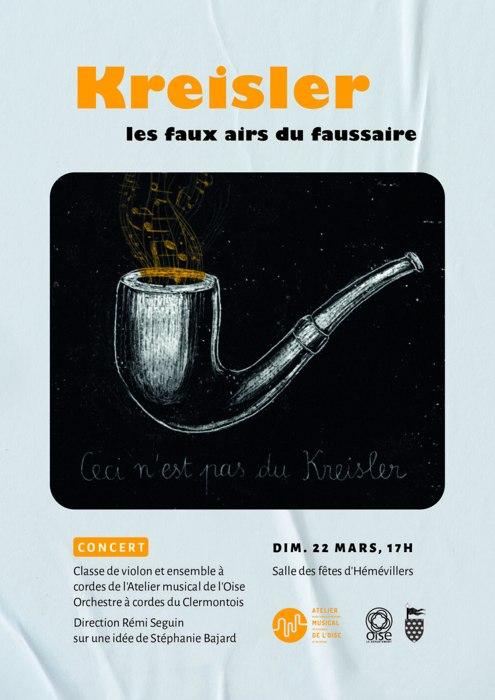 Qui se cache derrière les œuvres du violoniste et compositeur Fritz Kreisler ? Nombreuses de ses compositions sont écrites « dans le style de » musiciens du passé. Il s’agit dans ce concert de mettre en miroir des pièces pour violon de Kreisler inspirées d’autres compositeurs et de « vraies » pièces pour orchestre des mêmes compositeurs. Classe de violon et ensemble à cordes de l’Atelier musical de l’Oise, orchestre à cordes de l’école de musique du Clermontois.